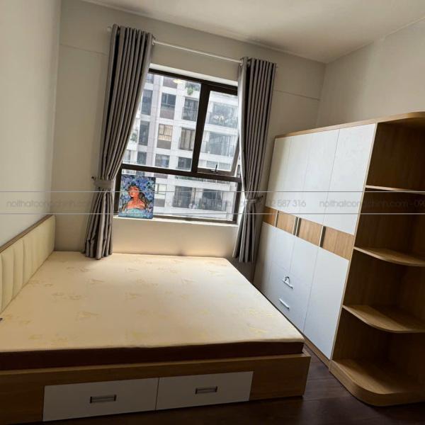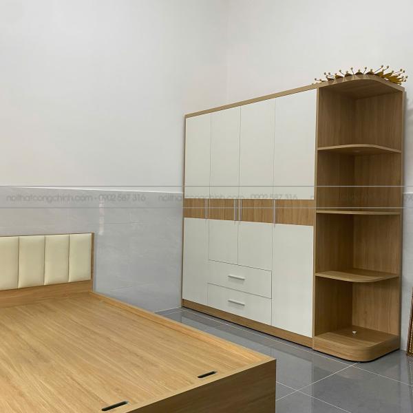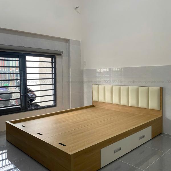 Độ dày gỗ: 17mm, vai giường kép dày 35mm, hậu trắng 8 ly, chắc chắn và bền bỉ theo thời gian.